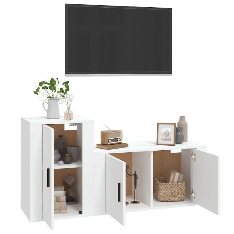 Color: Blanco ?Material: Madera Entrega incluye: 1 x Mueble de TV: 80 x 34,5 x 40 cm (Largo x Ancho x Alto) 1 x Mueble de TV: 40 x 34,5 x 60 cm (Largo x Ancho x Alto)