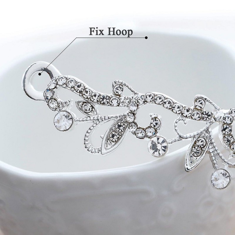 Esta impresionante tiara de plata es digna de una princesa. Presenta hermosos remolinos incrustados con cristales brillantes y diamantes de imitación. Combina perfectamente con vestidos de novia blancos y de diamantes blancos.