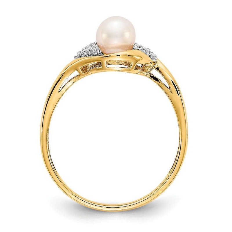 Anillo de perla cultivada de agua dulce y diamantes en oro amarillo de 14 k - Peso del diamante 0,02 quilates Peso de la piedra preciosa 1,13 quilates en oro amarillo de 14 k - Estuche de joyería listo para regalo incluido - Tamaño 7.00 - Grosor: <2 mm - Ancho de la banda: 2 mm - Largo de la parte superior de la banda: 6 mm - Ancho de la parte superior de la banda: 10 mm - Ancho de la parte superior de la banda: 10 mm - Largo de la parte superior de la banda: 6 mm - Característica: Sólido - ::: ::: [ Cuidado y manejo: Diamante ] - Limpiar con agua tibia y jabón y un cepillo o paño suave. ::: ::: [ Métodos de mejora potencial: Perla cultivada ] - Generalmente se blanquean y se pulen para lograr un color y una forma uniformes. Se puede teñir o irradiar para producir diferentes colores. ::: [Cuidado y manejo: perla cultivada] - No utilice limpiadores ultrasónicos ni vaporizadores. Evite el contacto con cosméticos, laca para el cabello, perfumes y productos químicos domésticos. Limpiar con un paño suave. :::