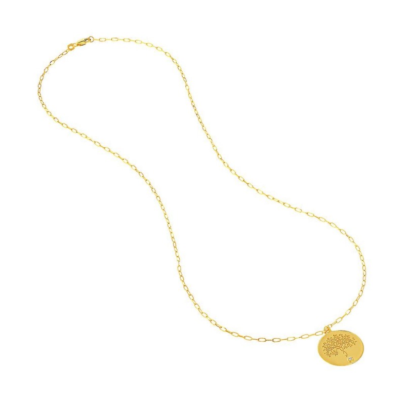 Collar ajustable de oro amarillo de 14 k con medallón del árbol de la vida de diamantes de 0,015 dwt