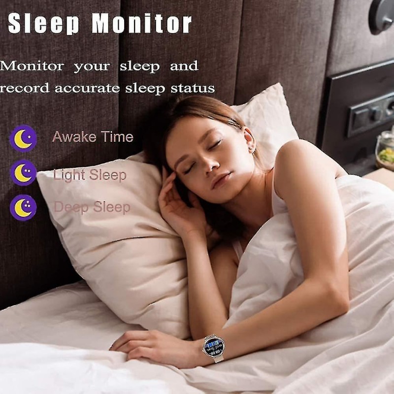 Reloj inteligente con pantalla táctil completa a prueba de agua El aspecto elegante de este reloj inteligente con pantalla táctil es el mejor regalo para mujeres, medición de frecuencia cardíaca, presión arterial, monitoreo del sueño, ciclo fisiológico femenino, podómetro, kilómetros deportivos, consumo de calorías, fotografía de distancia, recordatorios de sedentarismo, muchos modos deportivos, etc. Impermeable, a prueba de sudor y a prueba de lluvia en la vida diaria. 8 modos deportivos y resistencia al agua IP67 Realiza un seguimiento de las actividades de todo el día, incluidos los pasos, la distancia y las calorías quemadas. 8 modos deportivos monitorean tus datos de movimiento para personalizar el ejercicio. Correr, andar en bicicleta, jugar al fútbol, etc. Podrás monitorizar tus brazadas en la piscina y usarlos bajo la ducha fría. Notificaciones y SMS Recibe llamadas, mensajes SMS y SNS, Facebook, WhatsApp, Twitter, Instagram, etc. Cuando recibes una notificación, el reloj vibra para recordártelo. Simplemente conecte la pulsera a su teléfono a través de la aplicación y configúrela en la aplicación. No se pierden llamadas ni mensajes. Monitor de frecuencia cardíaca y monitoreo del sueño Con sensores ópticos inteligentes incorporados, el rastreador de actividad monitorea su frecuencia cardíaca en tiempo real y detecta automáticamente su frecuencia cardíaca. Además, monitorea eficazmente la calidad de tu sueño y proporciona un análisis integral de la calidad del sueño para ayudarte a desarrollar un estilo de vida más saludable. Compatibilidad y otras características Este reloj es compatible con teléfonos inteligentes que utilicen iOS 9.0 / Android 4.4 o superior y Bluetooth 4.0 o superior. Este reloj también cuenta con alarma, cronómetro, control remoto de la cámara, pronóstico del tiempo y ajuste de brillo. (No compatible con iPad)