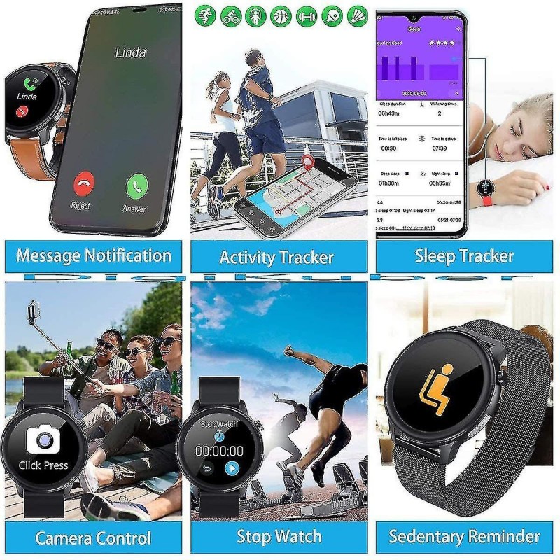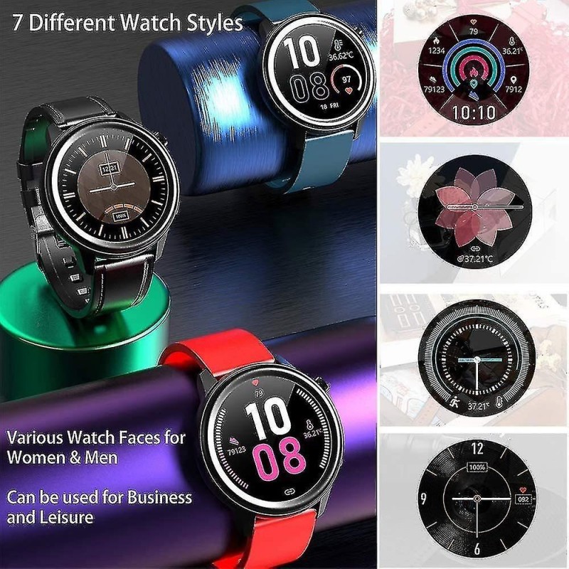 VARIAS FUNCIONES como visualización de hora y fecha, visualización del clima, notificación de llamadas y mensajes, contador de pasos, registro de consumo de calorías, registro de kilometraje deportivo, 7 modos deportivos, monitor de frecuencia cardíaca, diagnóstico de ECG / PPG / Ai, control de cámara, monitor de sueño, recordatorio sedentario, cronómetro, entrenamiento respiratorio. MONITOR DE TEMPERATURA CORPORAL DE 24 HORAS Puede medir su temperatura corporal durante 24 horas, los datos de temperatura corporal se pueden guardar en la APLICACIÓN [SmartHealth], puede controlar su temperatura corporal y controlar su salud en cualquier momento. GESTIÓN DE DEPORTES Y SALUD Seguimiento de la medición de múltiples datos deportivos y de salud: modo multideportivo, podómetro, distancia, calorías; Diagnóstico de ECG/PPG/IA/monitor de frecuencia cardíaca. Presta atención a tu salud todo el tiempo. Los datos deportivos y de salud del reloj inteligente son solo de referencia, escuche los consejos del médico. MONITOR DE SUEÑO Y PANTALLA DEL TIEMPO Función de monitoreo del sueño: cuando se duerme, el reloj inteligente calculará automáticamente la calidad de su sueño y sincronizará los datos con la aplicación. Puedes conocer la calidad del sueño. La función de visualización del clima mostrará información meteorológica actual y la calidad del aire. (Nota: necesita obtener la información de ubicación de su teléfono para ver el clima).IP68 IMPERMEABLE Y CARGA MAGNÉTICA IP68 tiene un excelente rendimiento a prueba de agua y puede satisfacer la mayoría de las necesidades diarias. (Nota: No lo sumerja en agua profunda durante mucho tiempo. Tampoco lo use en aguas termales ni baños calientes). Carga de succión magnética, el tiempo de carga es de aproximadamente 3 a 4 horas, el tiempo de uso es de aproximadamente 5 a 13 días, en espera de 20 a 40 días.